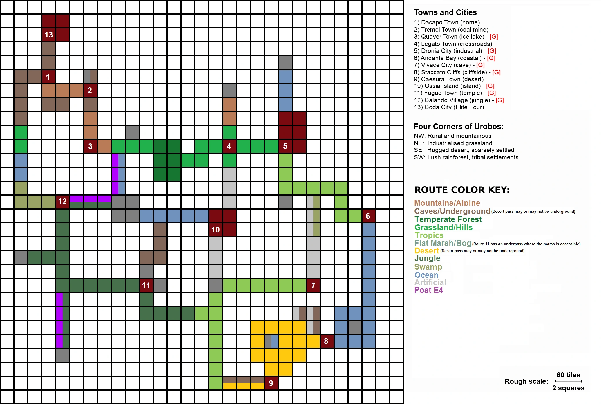 This page is for people who are mapping routes. Note that all maps are WIP and the tileset is still being worked on. As a result, there may be some tiling errors that would be corrected once the required tiles are put in place.